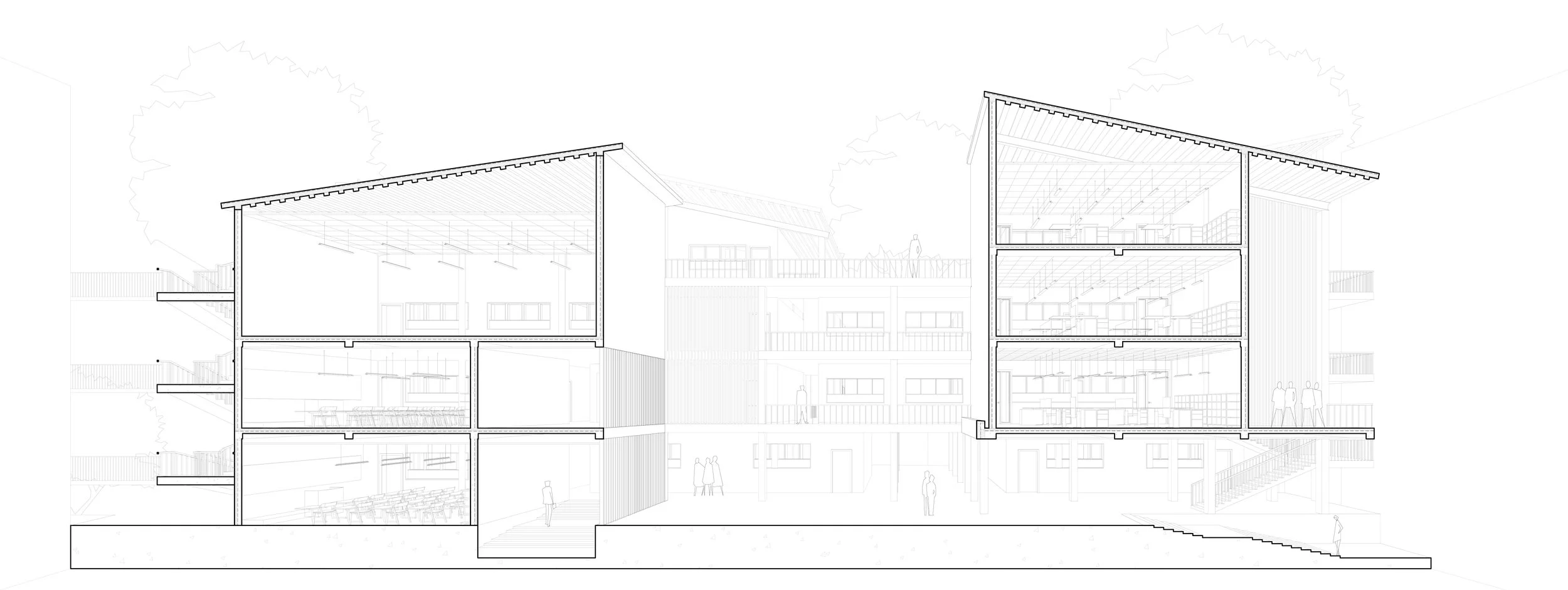 通过将更多的底部空间归还给使用者,并在屋顶创造多层次的活动平台与绿地,我们希望为城市带来更多开放与共享的空间体验,同时使整体建筑形态与当地环境和建筑风貌更加融合。