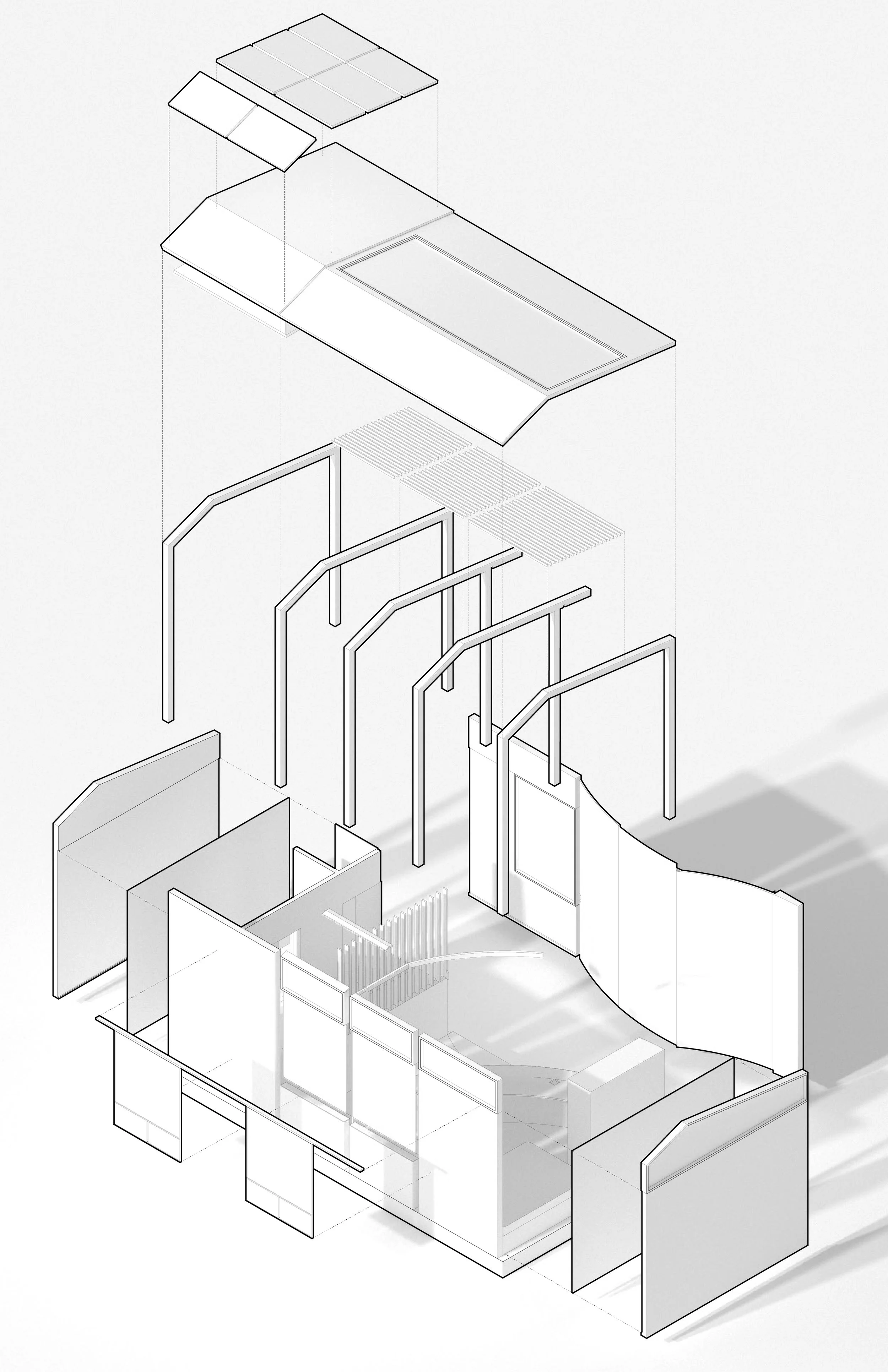 将场地空间重新打散,再根据剧场和动线需求重新组合。形成新的活动+聚集场所
